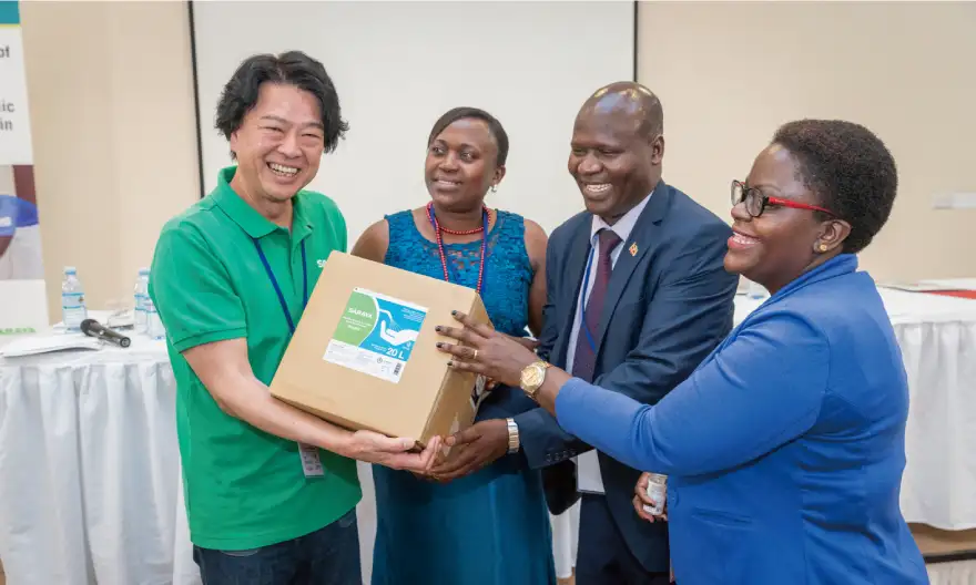 RHUからアルコール手指消毒剤が現地のクリニックに届けられ、手指消毒の研修を受けた医療従事者がそれを使用し、院内感染を防ぎます。今回の届け先は、首都カンパラの郊外にあるGulu(グル)、Lira(リラ)、Apac(アパッチ)、Luwero(ルウェロ)の4カ所。